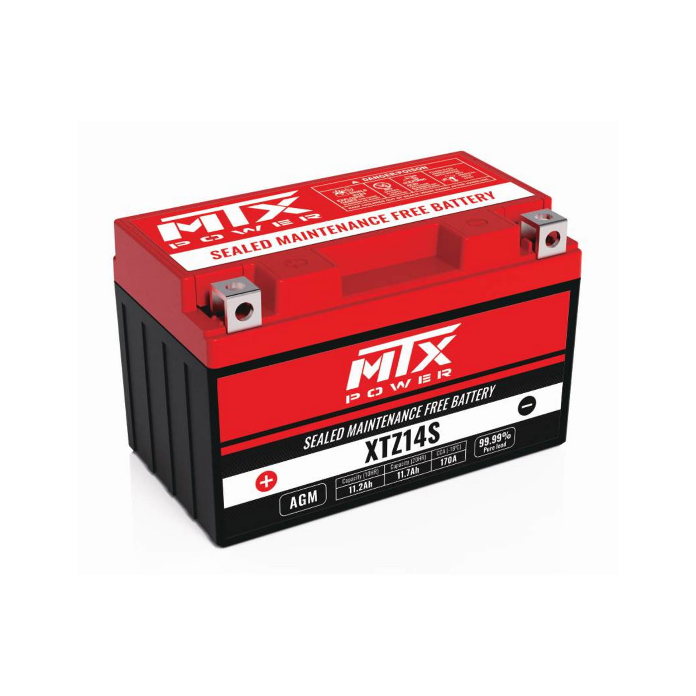 MTX high performance AGM battery is ideally “install & go” design. The use of latest developed absorbed glass matt (AGM) material significantly improves the CCA and life-cycle of the battery. The new straight-through welding technology effectively reduces the internal resistance, so the battery outputs much higher cranking power.